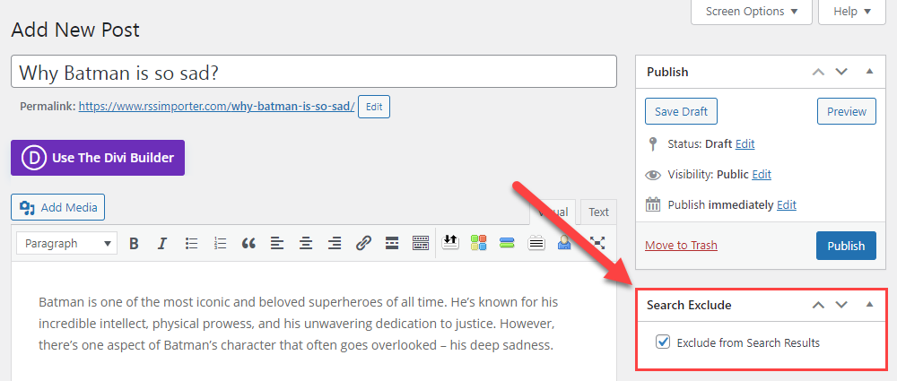 Below you can see 3 posts which are excluded from search. You can try to search them in the search bar, for example using the following keywords: